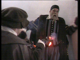 Een bemodderde Willem keert terug van de oorlog bij zijn eerste vrouw, Anna van Buren Vooral deze laatste was voor ons interessant omdat we onze werkwijze konden actualiseren en met een aantal enthousiaste collega’s en dito discipelen nogmaals toetsen aan de onderwijspraktijk. Modulaire opbouw. Enkele lessen geschiedenis of een uitvoerige leereenheid? In 1988 begeleidden we op een congres over ‘Speelfilm en geschiedenis’ op de Erasmus Universiteit te Rotterdam (22 en 23 april) een workshop over de reeks Willem van Oranje. Als materiaal gebruikten we een compilatievideo met fragmenten. De Nederlandse deelnemers reageerden (aanvankelijk) veel negatiever op de uitzending dan de aanwezige Vlamingen. “Een ouderwetse draak.” “Onecht.” “Er zijn geen echte dialogen, alleen monologen om ideeën te verkondigen.” “Elk cliché waarvoor ik gevreesd had verscheen ook werkelijk op het scherm”, etc.
