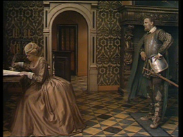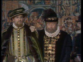 Dit soort rechtzettingen vereist natuurlijk een achtergrondkennis, die men niet bij elke leraar kan veronderstellen. Positief beoordeelde men de historische 'aankleding': kostumering, decors, houdingen ontleend aan schilderijen uit de tijd, het ten tonele voeren van panelen van Bosch, Titiaan e.d. 1555. Troonsafstand van karel V. De vermoeide keizer steunt op de arm van Willem van Oranje